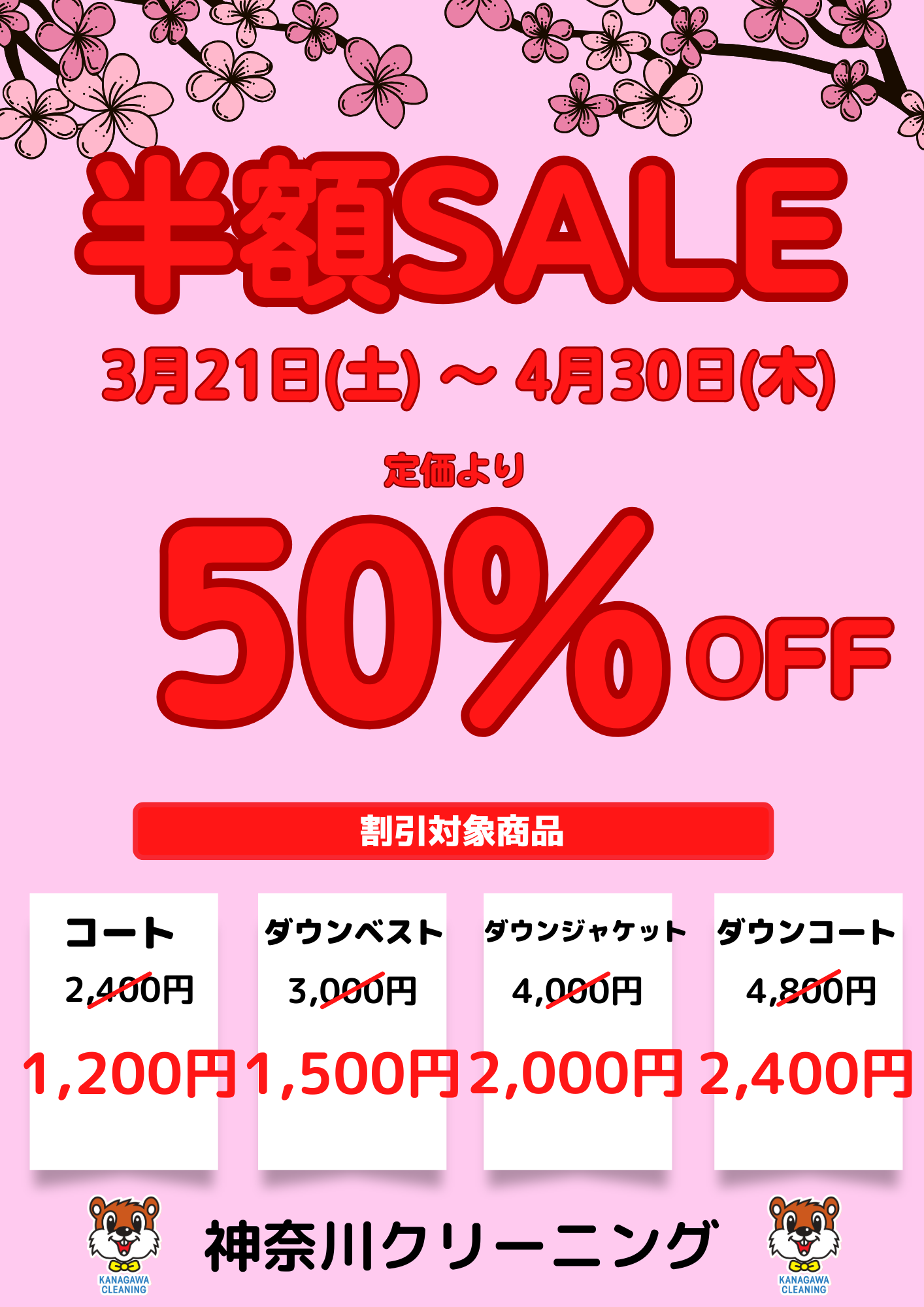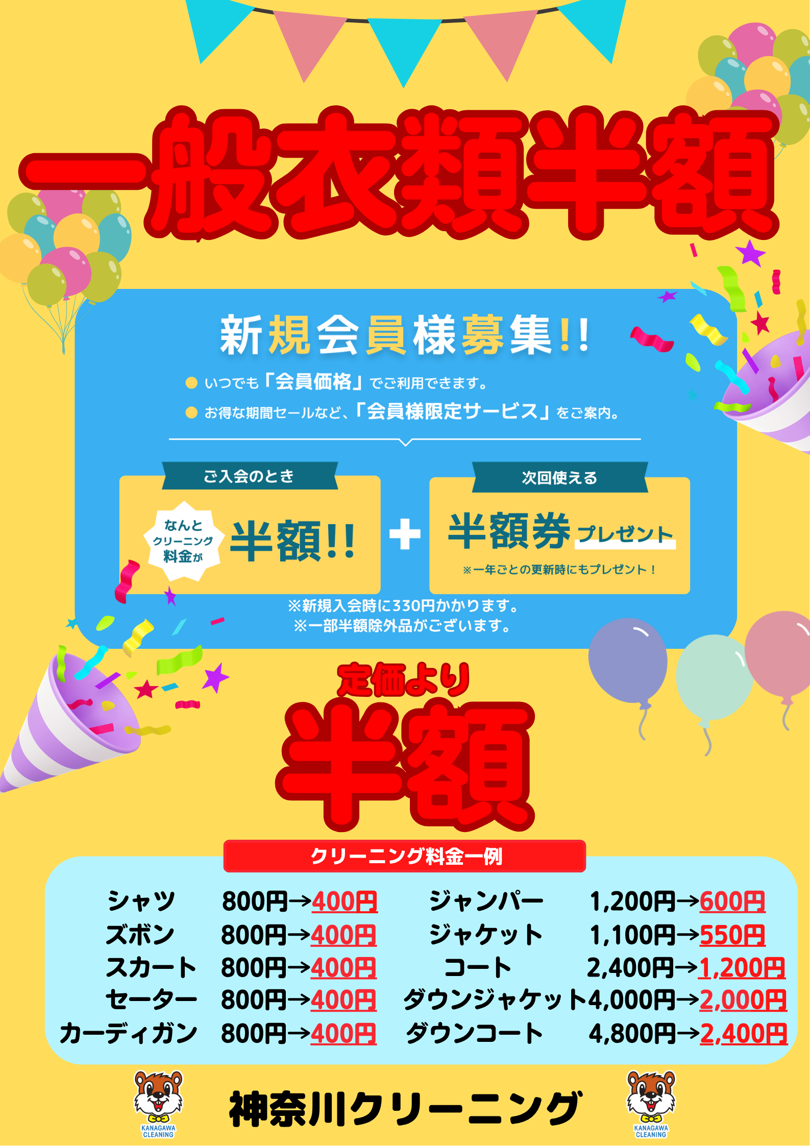 一般衣類が定価から半額に!